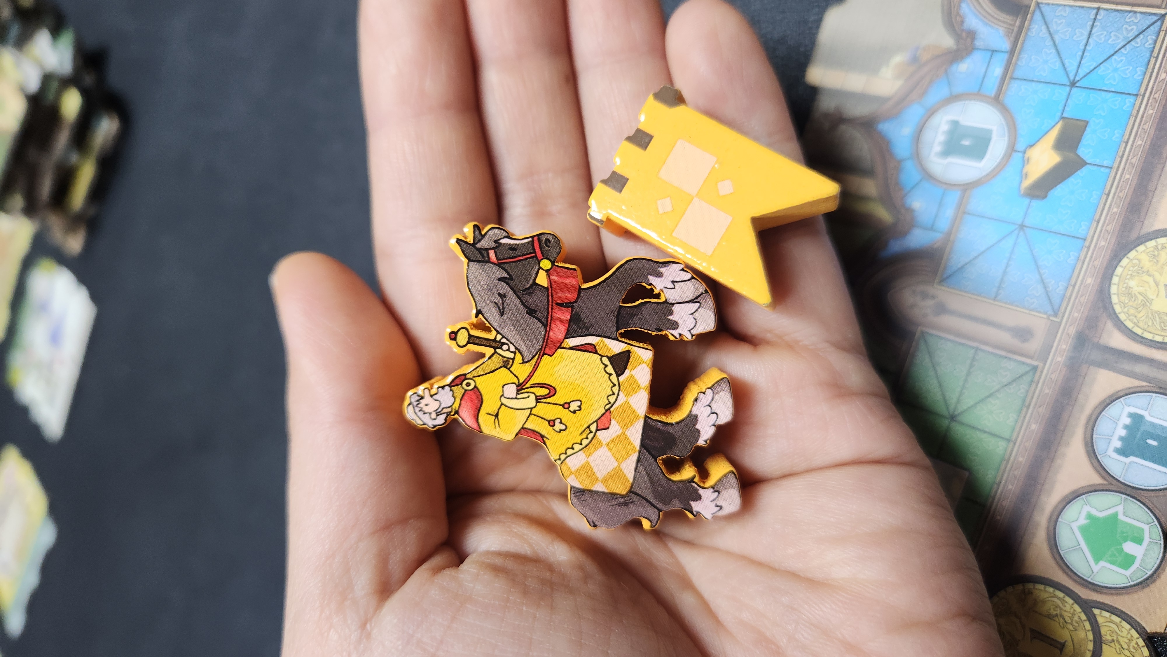 트릭테이킹 게임이다. 트릭을 이겨 카드를 따면 장당 그 라운드에 내가 획득한 점수가 된다. 라운드를 진행함에 따라 획득한 카드를 일정 장수 뽑아 다시 트릭에 쓰는데, 앞라운드에서 져서 카드가 많이 없으면 센 카드를 더미에서 새로 뽑을 수 있다는 게 특이점!