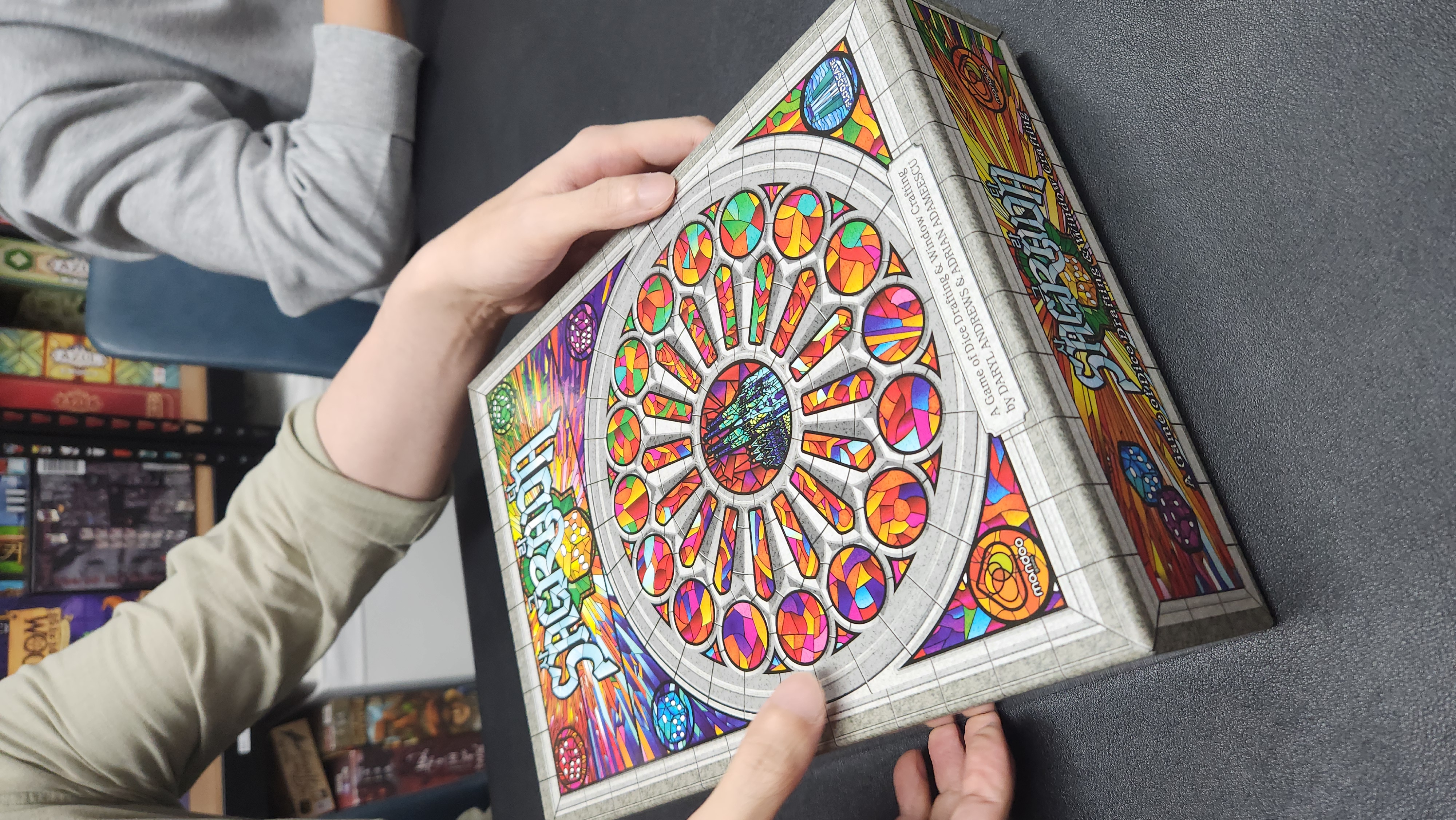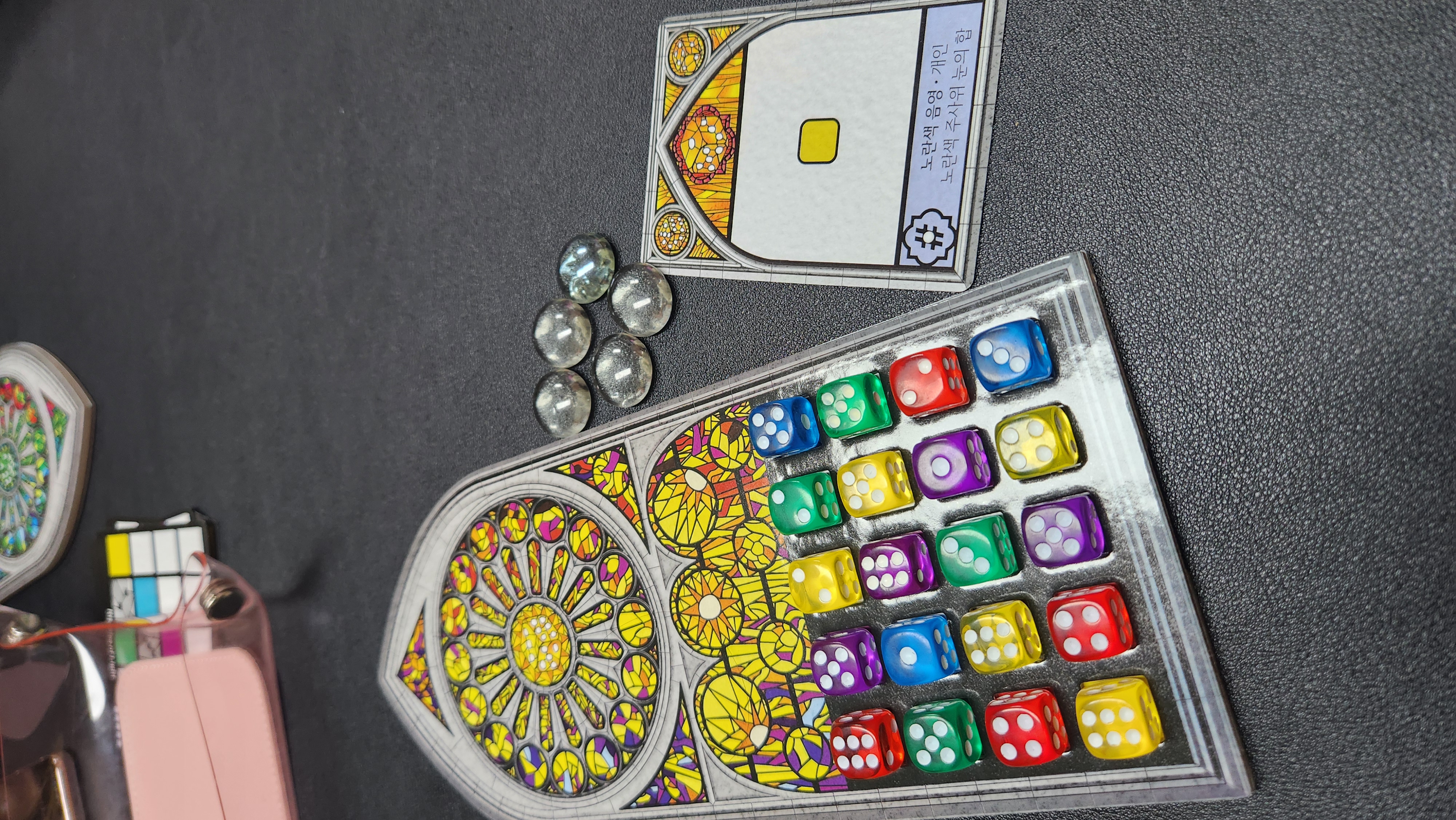 미션을 고르고, 주사위를 굴려 색과 눈 수를 미션에 맞게 배치해나가는 게임이었어요.