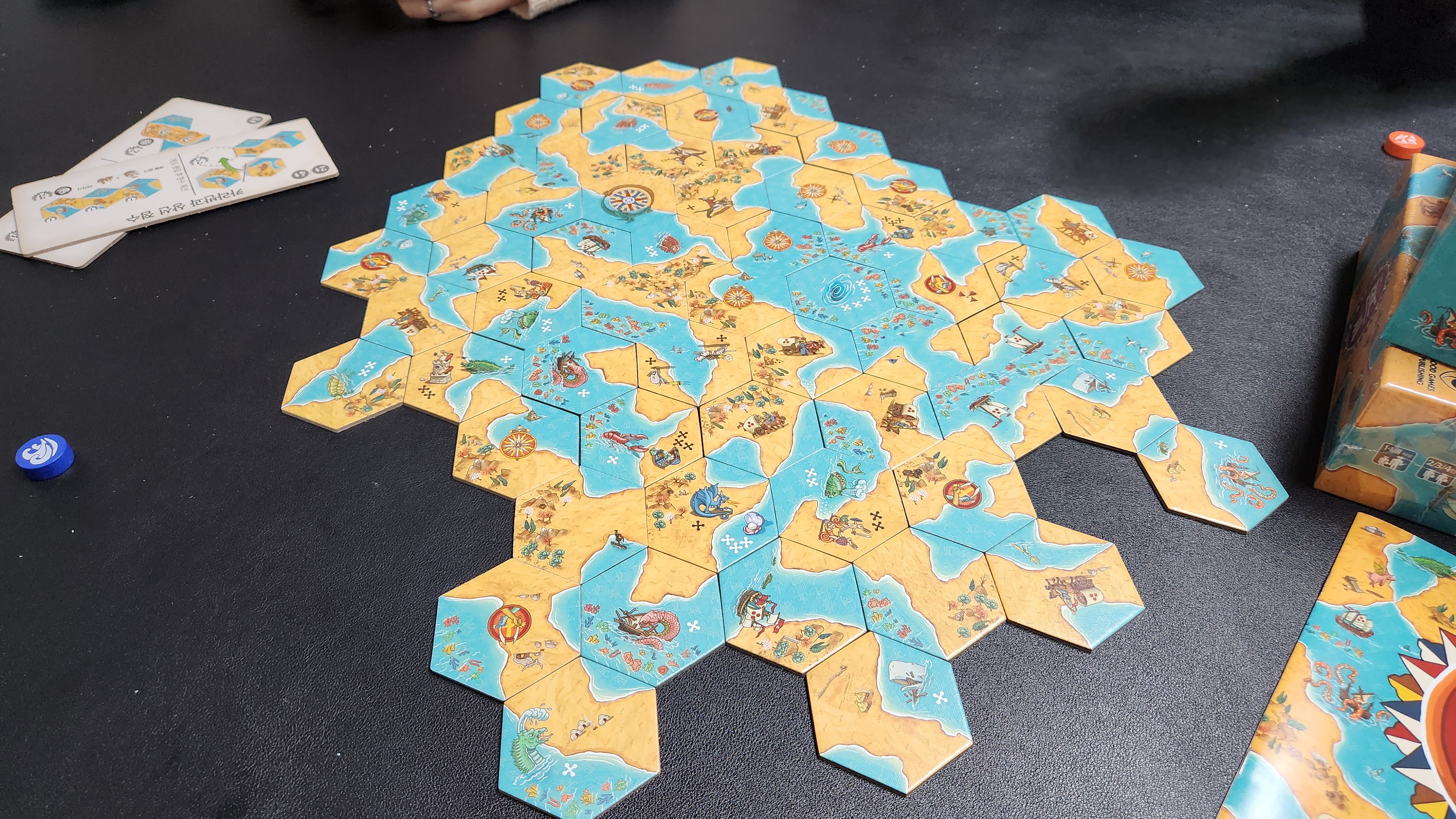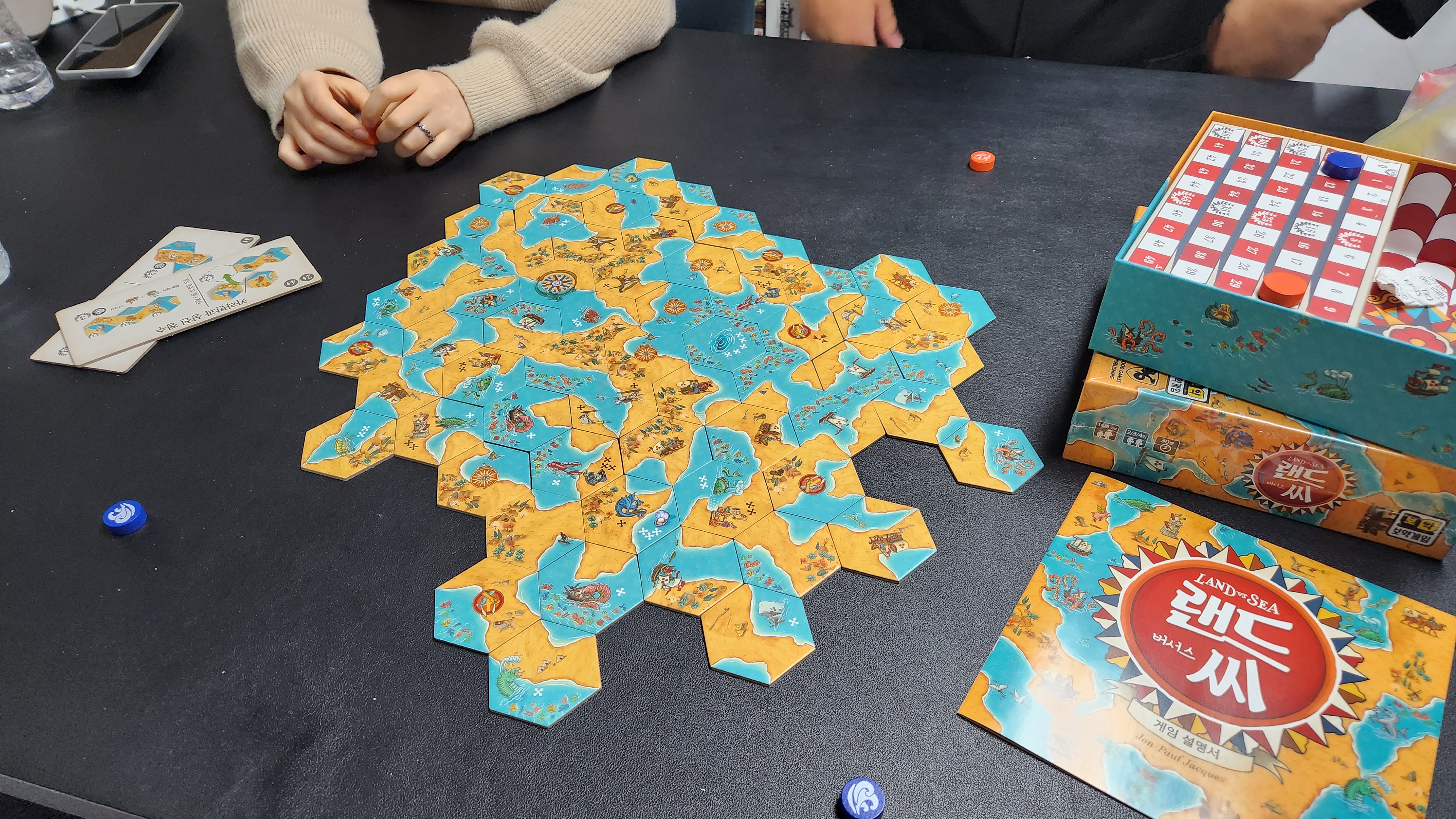 2대2 팀전! 땅과 바다로 나뉘어 타일 놓으며 영역 완성해 점수 먹는 추상전략게임.