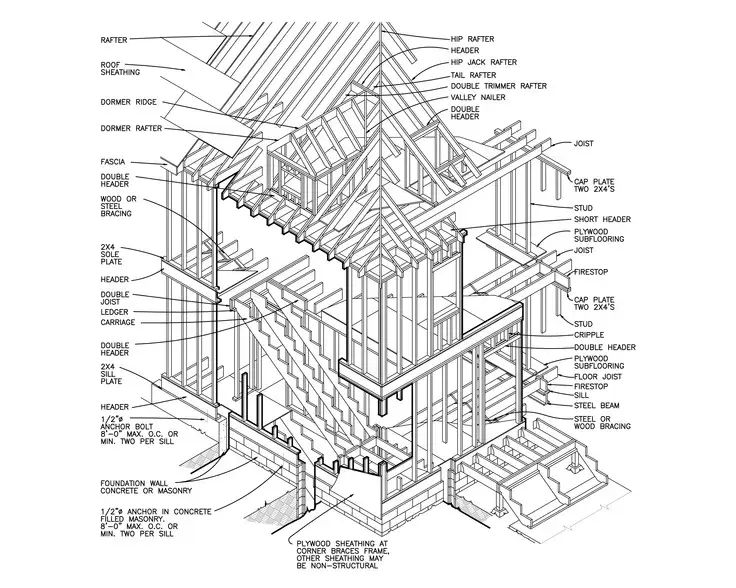 4. 경량 목구조: 와, 오늘 새로운 단어들 많이 알았다. 오늘 안 건 새발의 피다. 아래 이미지 안에 나온 것 중에서 10분의 1도 모르는듯.... 열심히 공부하자