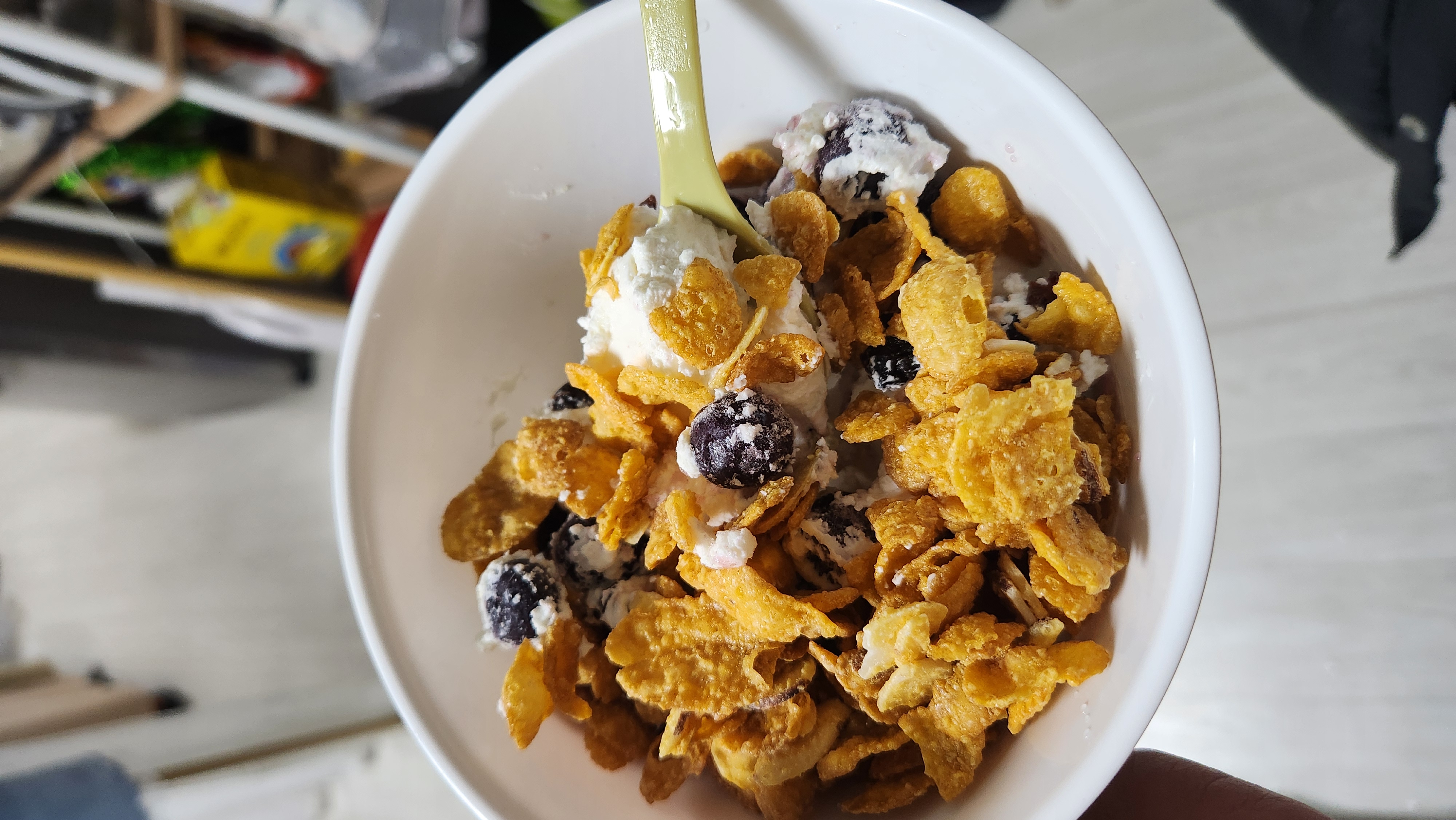 저녁 토마토계란파스타, 요거트에 블루베리, 시리얼