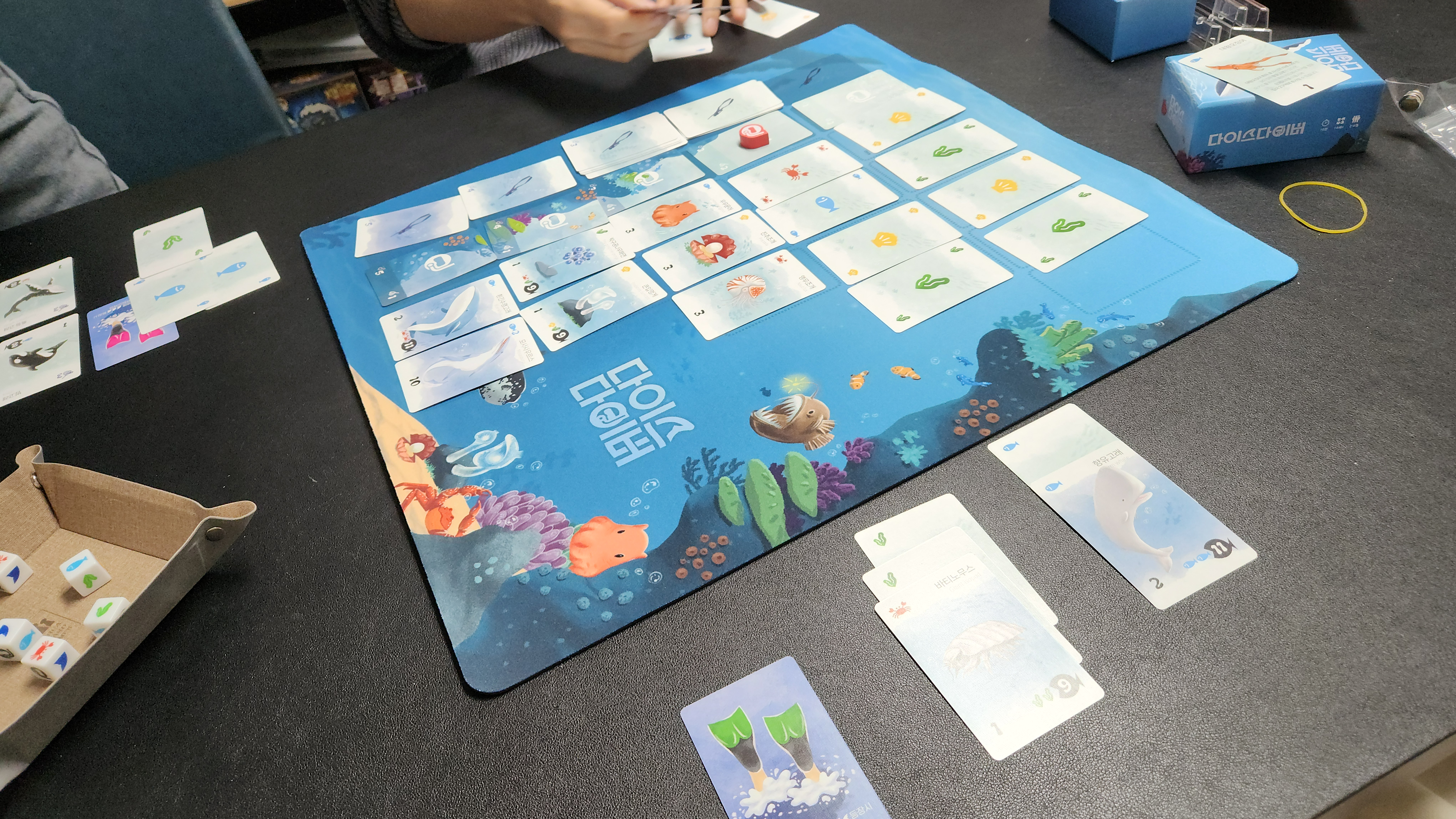 다섯시 좀 넘어 정리까지 끝내고 조금 남은 시간, 다이스다이버 했습니다! 상어를 피하며 잠수해서 해양생물 낚기~🎣