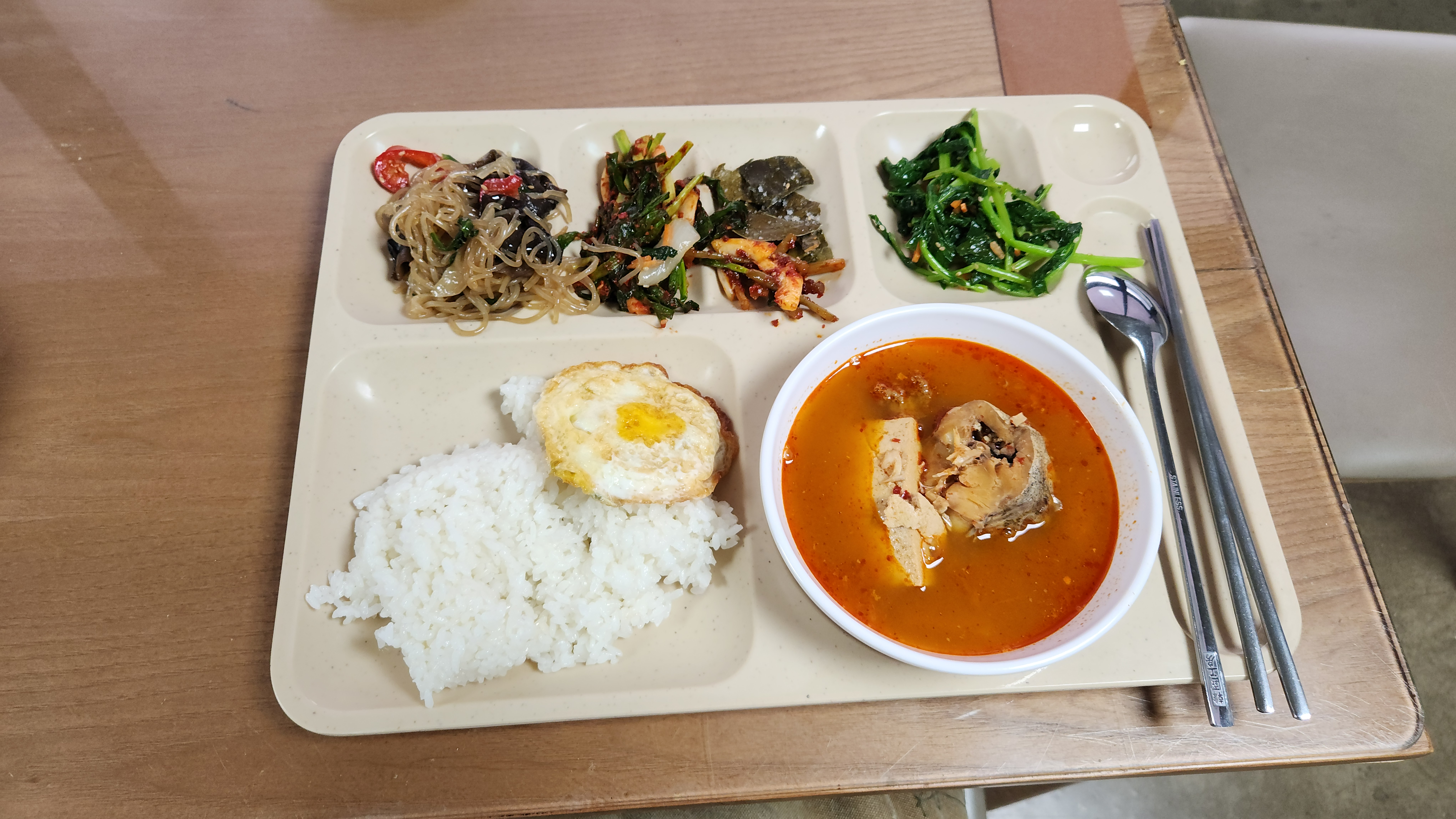 점심 한식. 너무 많이 먹었나보다. 오후내내 속더부룩해서 짜증났다. 점심 식사량을 조금 줄이자.