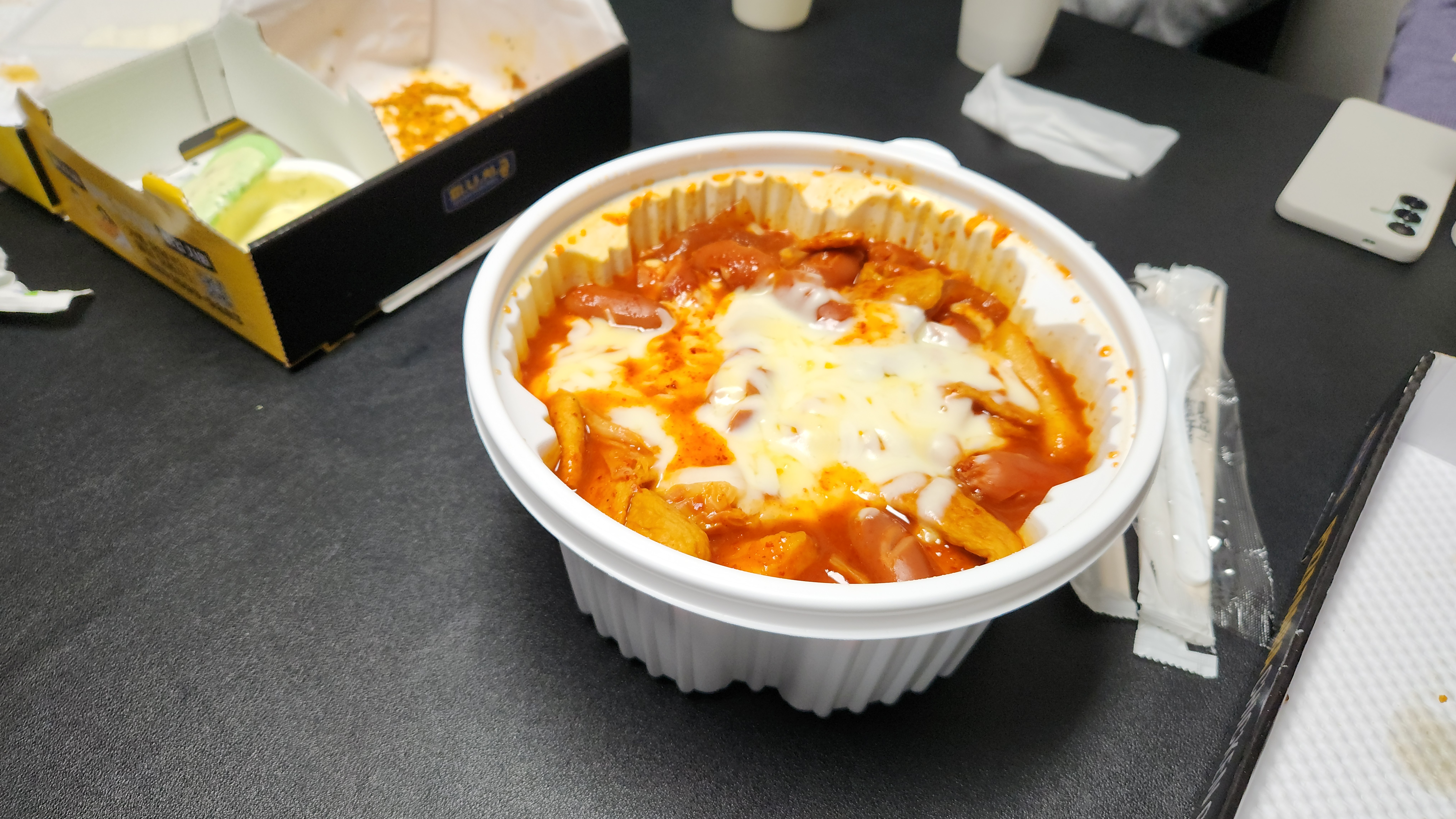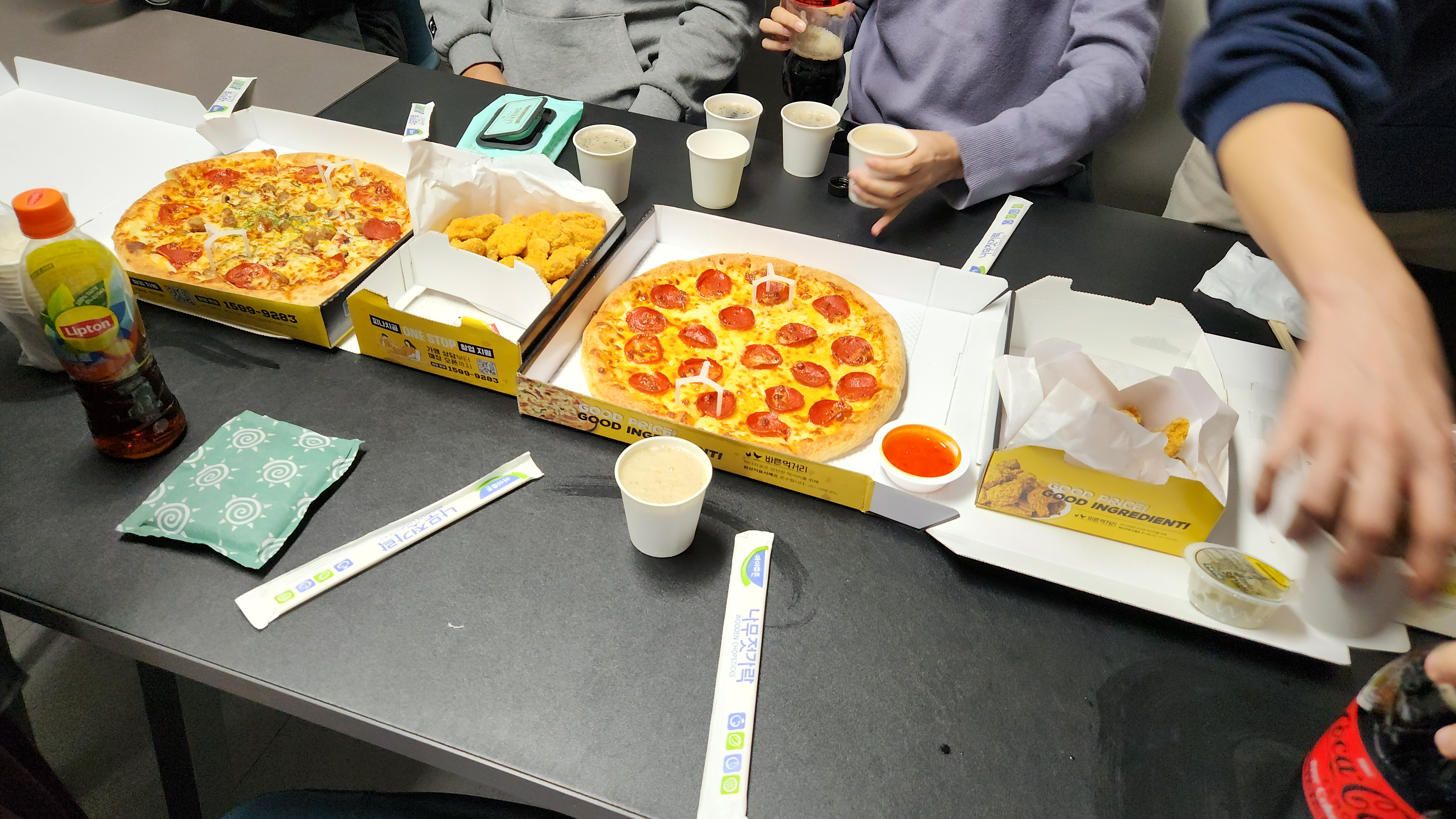 저녁 치킨, 피자, 떡볶이, 도넛