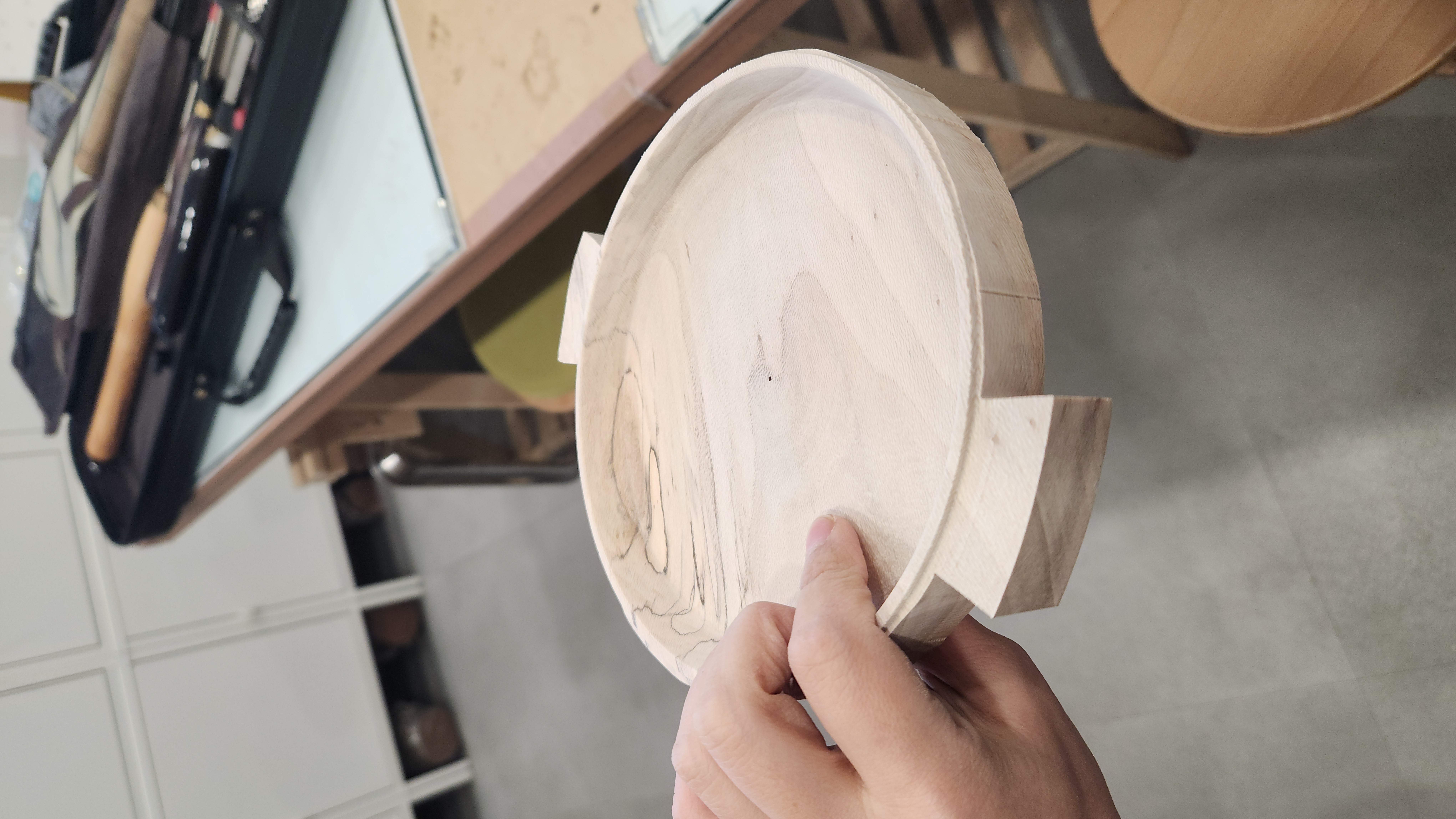 접칠 마무리하고나니 시간이 애매하게 남아서 오전에 카빙 시도했던 접시를 그냥 터닝으로 속파기 해버렸다.