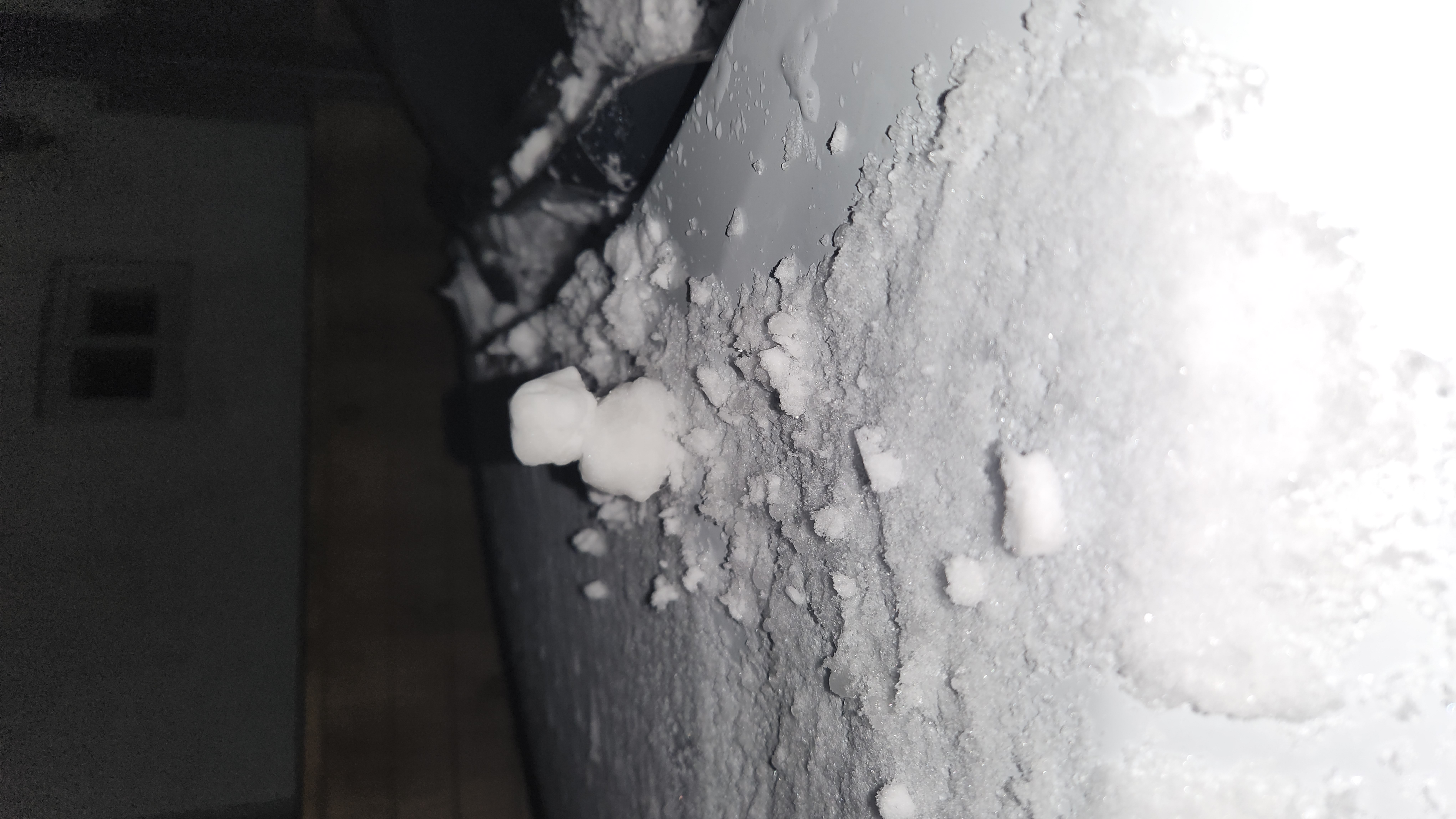 집 도착해서 와이퍼 사이에 낀 눈가루 덜어내며 대강 쥐어만든 쬐그만 눈사람.